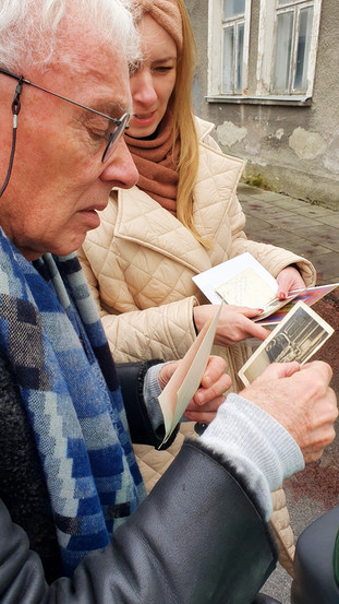 Paul z Marysią odwiedzili, dzięki uprzejmości dzisiejszych właścicieli, dawny dom rodziny Besenów przy ul. Grunwaldzkiej, gdzie dziś mieści się apteka i gabinety lekarskie. Co za koincydencja - Ruta była farmaceutką i przez większość życia prowadziła aptekę w Londynie. Oglądanie spotkania Marysi i Paula, których babcia i mama przyjaźniły się, a nawet mieszkały pod jednym dachem, było jak uczestniczenie w książkowej opowieści - przeżyciem niezwykłym i nieporównywalnym do innych. Wspólnie oglądali zdjęcia i czytali pocztówki od Ruty, a Paul przywiózł z sobą piękny duży portret babci Pauli, żony Rubina, który wisiał przed wojną na ścianie w domu Besenów, a który uratowała i wysłała Rucie do Londynu Julia, babcia Marysi. Rozmawialiśmy długo, odkrywając nowe wątki historii i opowieści. Okazuje się, że jeszcze długo po wojnie grybowskie koleżanki, Polki katoliczki i Żydówki, nie tylko korespondowały, ale też odwiedzały się i spotykały, nie tylko w Grybowie czy Londynie, ale np. podczas wspólnych wypadów do pobliskiej Krynicy-Zdroju. Będziemy dalej badać te fascynujące wątki.